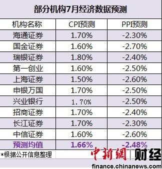 今日,国家统计局将发布7月份国民经济运行数据,除备受关注的居民消费价格指数(CPI)以外,工业生产者价格指数、固定资产投资以及房地产投资销售情况的相关数据也将同期发布。此前,机构普遍预测7月CPI同比增幅将继6月跌破3%之后,继续下行并跌入2%以内;同时,这也将是两年半来首次跌至2%以下。